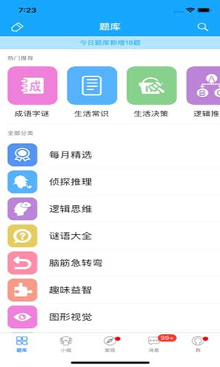 1.海量中文智力题库,每日智力题更新,包含各类侦探推理、逻辑思维,谜语大全、脑筋急转弯、知识百科、趣味益智、数学天地、决策判断等烧脑益智题。通过各类有趣的猜谜问答游戏,让你活跃思维越来越聪明!