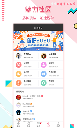 【趣味交友】随时随地文字、图片、表情、语音交友,想聊就聊。同时还可与对方发起唱歌、演电影台词、脑筋急转弯等新意的游戏互动,告别乏味的、单一的相亲网站的交友模式;