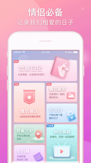 由情侣两人共同建立的空间只能两人记录并查看,你可以把每一天想对TA说的写进恋爱日记,这样对方就能感受到你的思念;一起完成恋爱的100件小事,才知道你们的恋爱有多甜蜜。