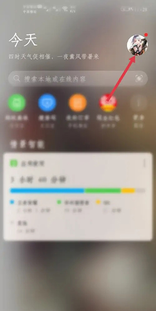 1.将手机左滑至搜索页面,点击右上角的头像。