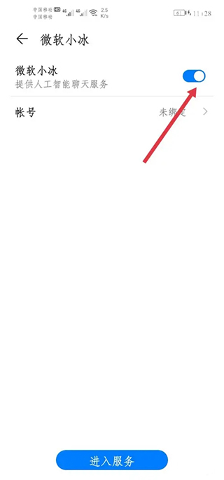 5.点击进入微软小冰,选择关闭该服务功能,就可以关闭虚拟男友。