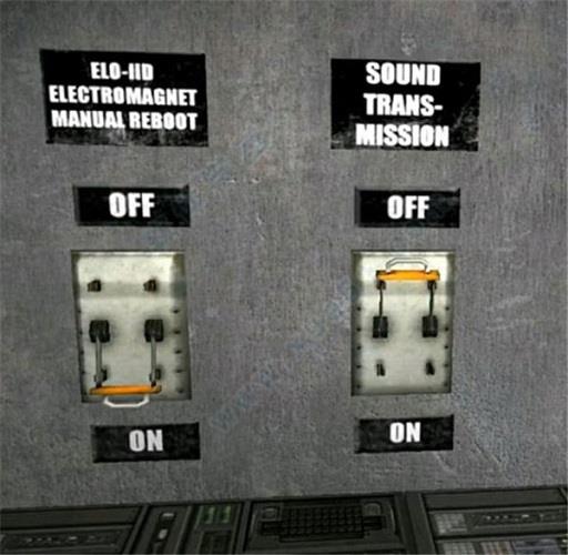 2、然后下来了后你会看见有三个拉杆按钮,左边一个拉杆是把收容室降下来并打开,右边的拉杆是开启扩音器,能听到里面的声音(记住,扩音器必须开!)。