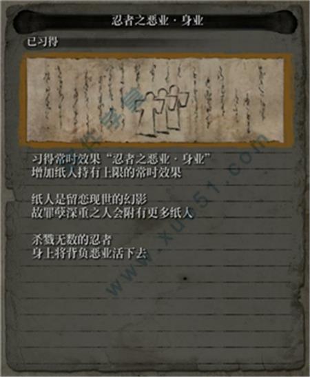 3、技能前期主要点潜行和忍杀回血,中期点伤害被动,觉得技能点不够中期可以适当刷一刷。