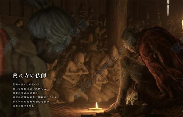 没有左臂的半老僧人。沉默寡言舍弃红尘之人。独居于山中荒寺,不停地雕刻着无数愤怒的佛像。捡到了被苇名之将击败的忍者,以后也会提供帮助。