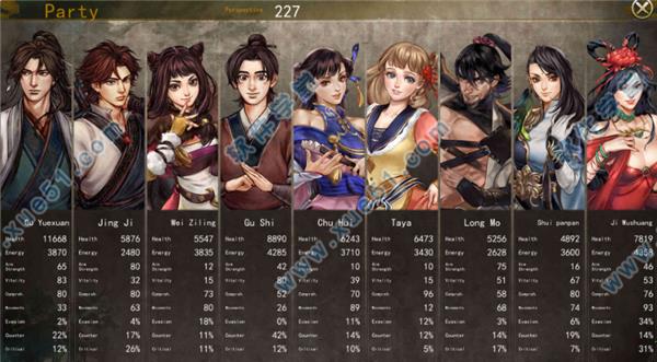 游戏中有30多名侠客可入队,每个人都有不同的武功发展方向与擅长能力,如何组成最佳阵容挑战各个关卡,是该作最核心的所在。
