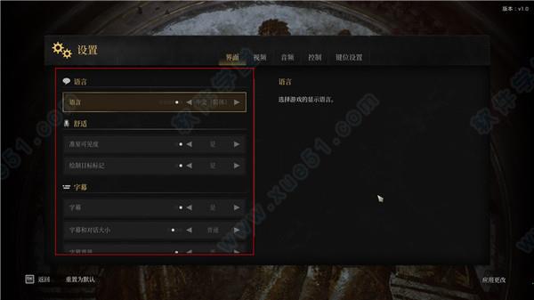 4、在“界面”中可以对:语言、舒适、字幕进行设置;