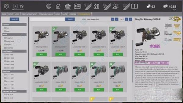 线:目前游戏里提供三种线:mono line单线(尼龙线),braid line编织线,fluoro line碳线(碳氟复合线),不同的线适用的场合不同,各有优缺点。