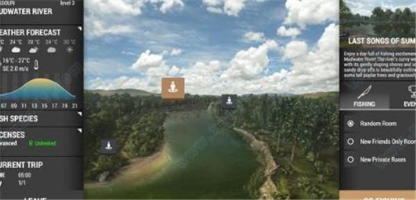 4、玩家要做的是达到三级然后进入地图如下 MUDWATER RIVER 中文意思大概是泥水河。然后选择处于中间的钓点。