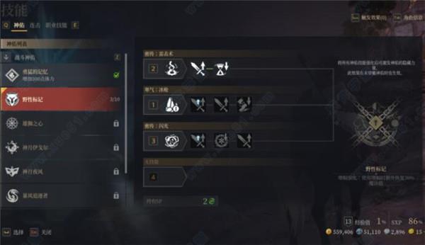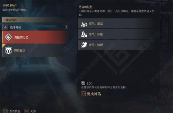 关于神佑的信息可以在菜单(Esc)>技能>神佑中找到。