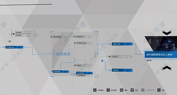 跟汉克破案,证据尽量收集全后追寻到蓝色血迹。跟随发现阁楼,找椅子上去就行。