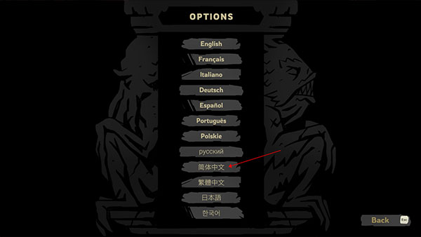 3.进入游戏后默认语言为英语,我们点击OPTIONS