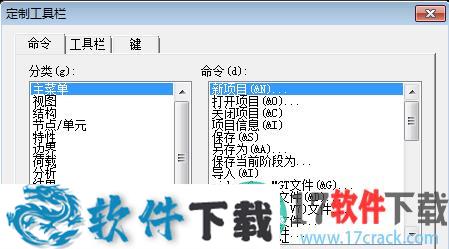 4、在定制工具栏窗口中我们可以看到“命令”,“工具栏”,“键“。我们点击”键“