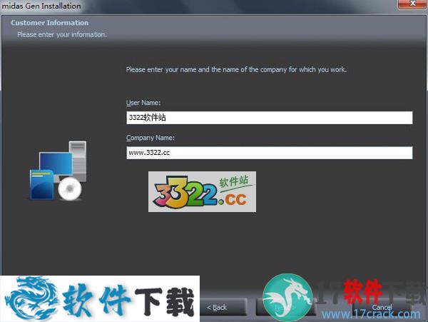 四、输入Midas Gen2019的用户使用信息,具体如下: