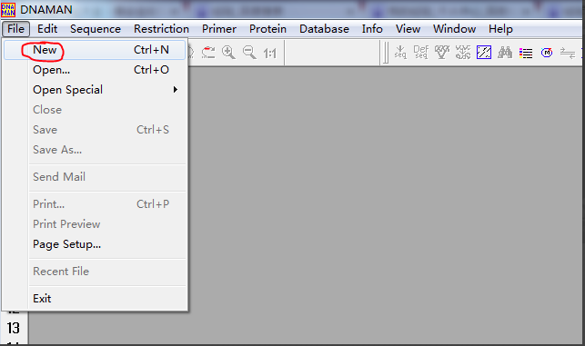 1.通过File|Open 命令打开待分析序列文件,则打开的序列自动装入默认Channel。(初始为 channel1)可以通过激活不同的channel(例如:channel5)来改变序列装入的Channel2.通过Sequence|Load Sequence 菜单的子菜单打开文件或将选定的部分序列装入Channel。