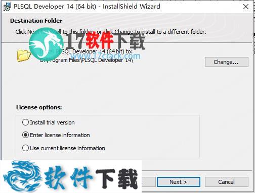 3.目标选择软件安装根目录文件夹;【默认路径为C:\Program Files\PLSQL Developer 14】;