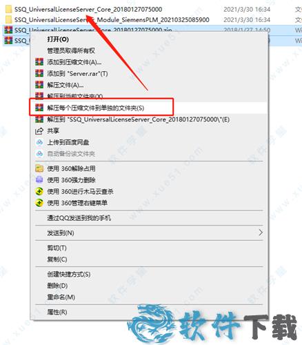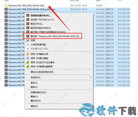 1、将下载好的21个压缩包全部选中,右击选择解压到“Siemens NX.1965.2502.win64-SSQ”文件夹中。