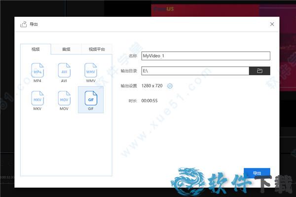 单击工具栏上的「导出」将影片导出为所需的格式。