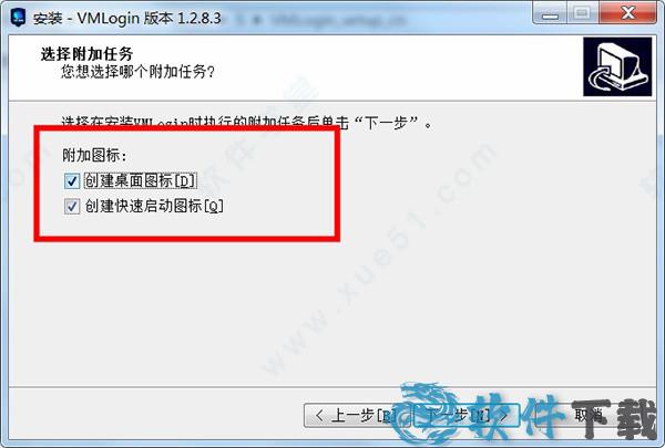 5、选择是否需要桌面图标以及快速启动栏图标。