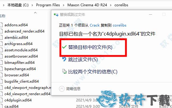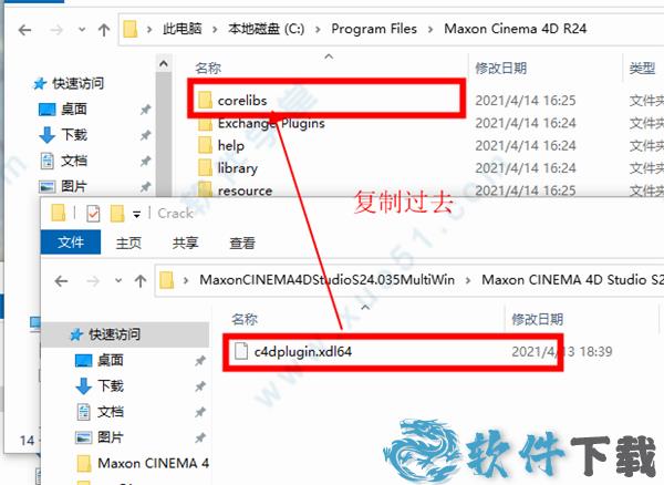 7、退出软件后打开软件安装目录,并且将破解文件复制到安装目录中的“corelibs”文件夹之中。