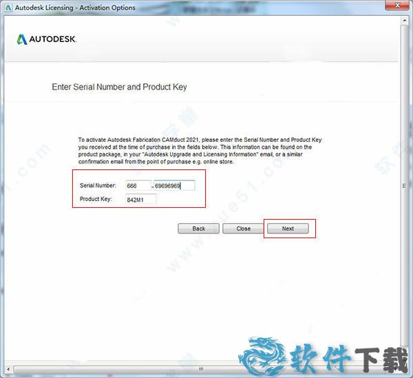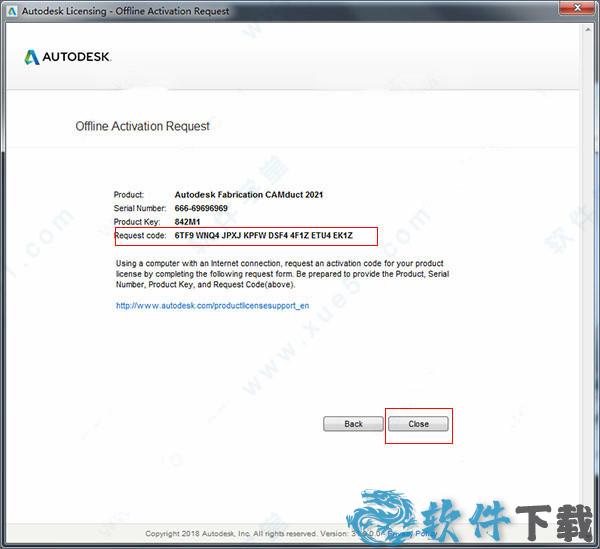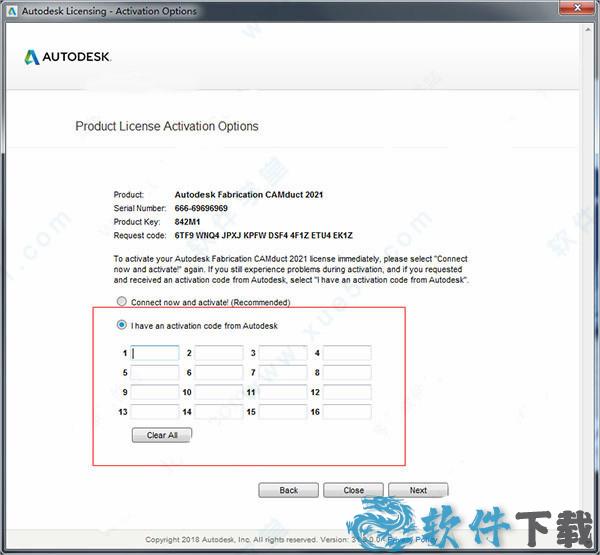 11、将刚才复制好的激活码输入我们之前打开的的Autodesk Fabrication激活页面,复制点击下一步软件即可激活成功。