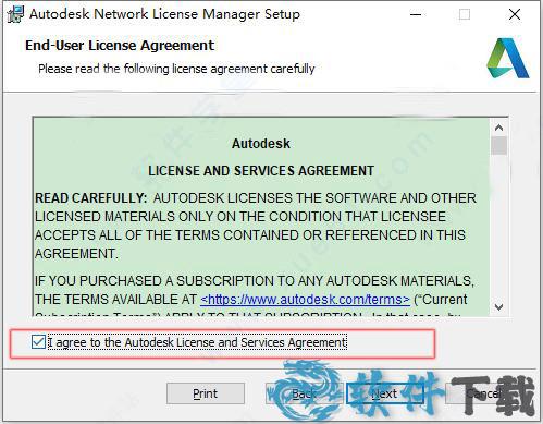 7、同样的,浏览完条款之后勾选上同意协议,点击下一步“next”,自主选择软件安装位置,其中默认路径是“C:\Autodesk\Network License Manager”,选择完之后点击“next”,然后等待安装完成就可以了。