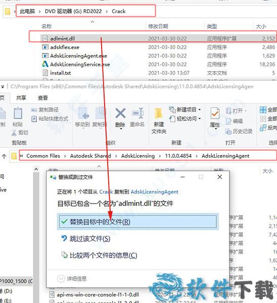11、将adlmint.dll复制到默认C:\Program Files (x86)\Common Files\Autodesk Shared\AdskLicensing\11.0.0.4854\AdskLicensingAgent\adlmint.dll ,点击替换目标中的文件。