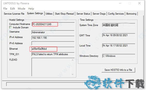 12、点击启动LMTOOLS,并在System Settings栏中找到你的HOSTNAME和MAC,同时用记事本方式打开lic.dat。