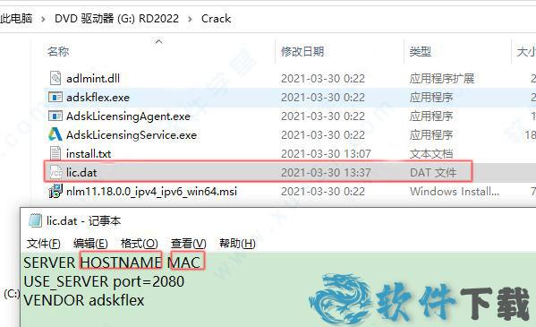 13、记事本方式打开lic.dat后,更改HOSTNAME和MAC以适合您的配置。