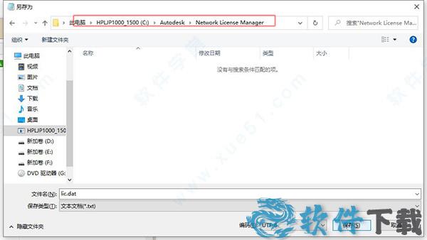 14、将lic.dat保存在所需位置“ C:\Autodesk\Network License Manager”文件夹中。