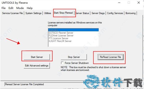 17、然后在“start/stop/read”点击“start server”,然后再点击“rereadlicense file”。