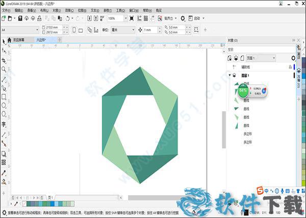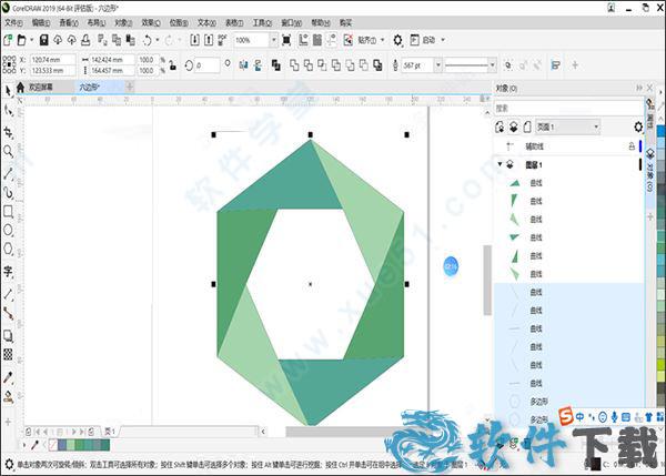 1、它虽然是一个专业的矢量绘图软件,但是对小白特别友好,软件的功能特别强大,复杂的操作能用简单的工具完成。非常适合我们这种小白下手,入门也快,很好满足了我速食主义的需求。我使用CDR矢量绘图软件做一个六边形环来作参赛的作品,包含的知识点不多:画六边形、造形调整、填充。