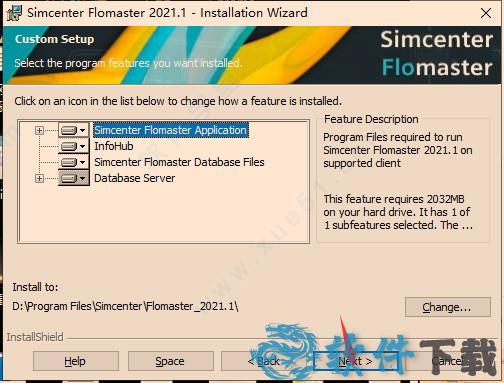 4、根据自身需求选择安装功能组件,直接默认即可;选择安装位置,默认路径为“C:\Program Files\Simcenter\Flomaster_2021.1\”,建议最好不要安装到系统盘(C盘);