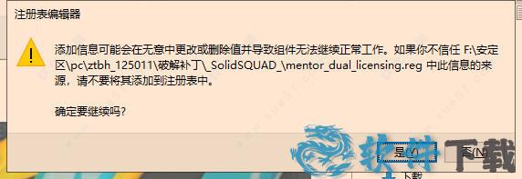 9、运行“ mentor_dual_licensing.reg”并确认将信息添加到Windows注册表中