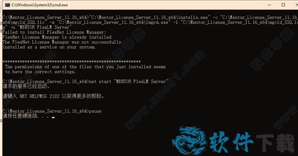 8、将Mentor_License_Server_11.16_x64文件夹复制到计算机安全位置,例如C盘或者安装目录中,路径不要包含非英文字母,然后以管理员身份运行Mentor_License_Server_11.16_x64 \server_install.bat,等待新服务“ MENTOR FlexLM Server”启动;