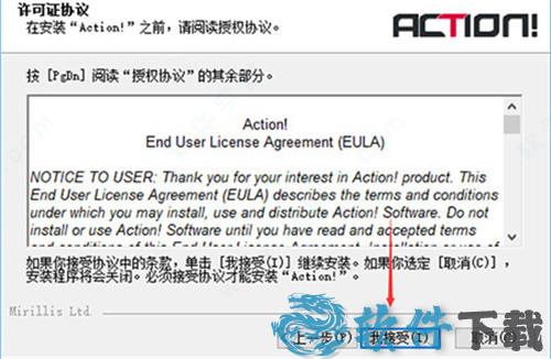 1、在17软件内下载到mirillis action汉化破解版的压缩包然后进行解压,在文件内双击.exe文件进行安装,默认中文,点ok。
