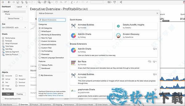 tableau desktop 2021是一款功能强大的数据可视化工具,它能够将数据更加直观的呈现在用户的面前,让用户能够更好的对数据进行分析后做出更加的明智的决策。该版本软件是目前软件的最新版本,该版本软件经过了开发者们的全面的优化之后软件的功能更加的强大使用起来也更加的方便。并且该版本之中还加入了更多的新功能,这些新功能让用户们在通过这款软件工作的时候,选择更多使用起来也更加的灵活。软件中新加入了各种快捷制作功能,能够非常有效的提高用户的工作效率,缩短用户的工作时间。通过这款软件用户能够进行轻松的数据可视化工作,能够创建数据的树状图、比例图等多种数据可视化图纸,让受众能够更加直观的看到数据的表现形式。软件与EXCEL不同,这款软件专注于数据的处理,无需与Excel那样繁琐的操作。用只需要经过简单的熟悉软件即可流畅使用软件。小编今天带来的是