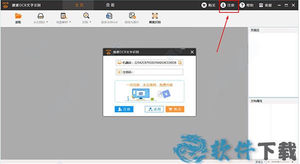 5、然后双击桌面上的快捷方式,你会发现软件界面不会再有注册界面了,说明软件破解成功,以后就可以免费使用捷速ocr文字识别软件破解版了。