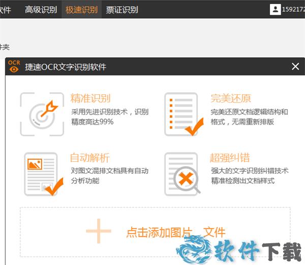 第二步,运行软件,软件默认是极速识别模式,可以自己换识别模式,然后把要识别的图片文件添加进来。