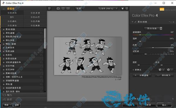 不论是模仿近20种流行的胶片类型、进行修整校正(例如色调和边框),还是调整图片制作优质黑白效果,都可以通过Silver efex pro控制整个图片处理流程。