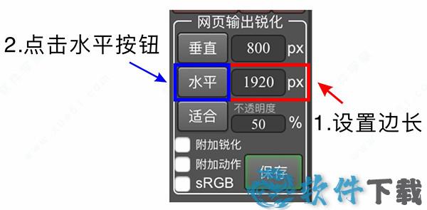 这个锐化模块里有水平和垂直两个选项。通常,输出一张横图我们先设置水平像素,姚老师经常使用的大小是1920px。接着,点击“水平”按钮。(竖图则设置垂直像素为1920)。