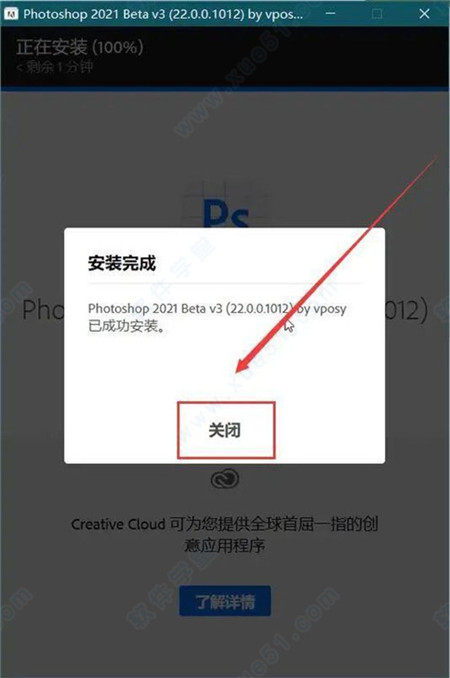8,关闭以后,在电脑桌面上找到安装好的软件,双击运行ps。