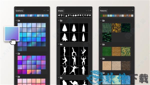 预设更简单、直观且更加井然有序。发现新的渐变、图案、色板、图层、样式和形状。
