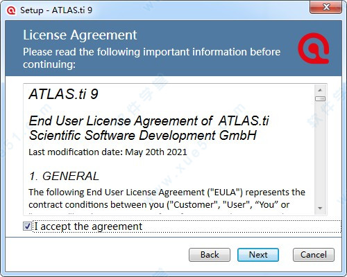 1、在本站下载并解压,双击运行“Atlasti_9.1.exe”安装原程序,进入安装向导。