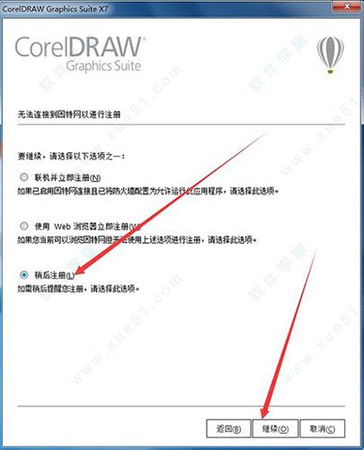 1、双击打开桌面上的快捷方式,勾选稍后注册,然后点击“继续”。