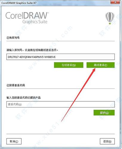 7、然后复制上图中的序列号,粘贴到之前软件的需要输入序列号的选框中,然后点击“离线激活”。