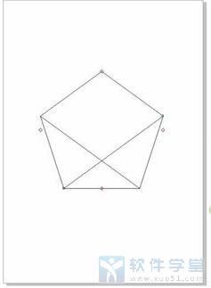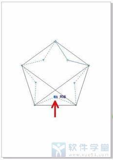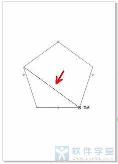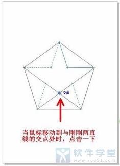 选取节点,也就是五边形下边的中点,按住鼠标左键拖动鼠标向五边形中心移动,移动到刚刚画的两线段的交点处再点击一下。