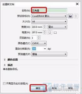 打开软件,按下Ctrl+N新建文档。可以给文档取个名字,比如五角星。