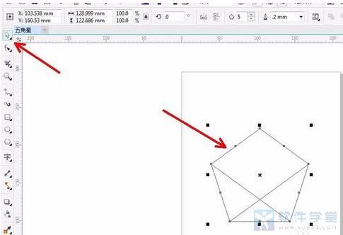 左手按住Ctrl键,右手按住鼠标左键拖动鼠标在画布中画出一个正五边形。