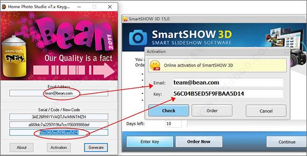 8、将keygen注册机上的邮箱和秘钥复制到软件上,然后点击check即可;