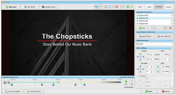 通过使用特殊效果,可以在幻灯片中添加一些魔术。流畅,爆炸性的过渡,动态和流畅的幻灯片动画,微妙或令人叹为观止的自然特效-这款3D幻灯片软件具有所有功能。使用“编辑幻灯片”模块创建自己的动画,包括惊人的3D相机效果。设计具有多个图层(照片,剪贴画,文本)的幻灯片,并为每个带有关键帧的图层微调动画。通过高光和发光使静止图像栩栩如生。尝试逼真的火,雪和雨的效果。